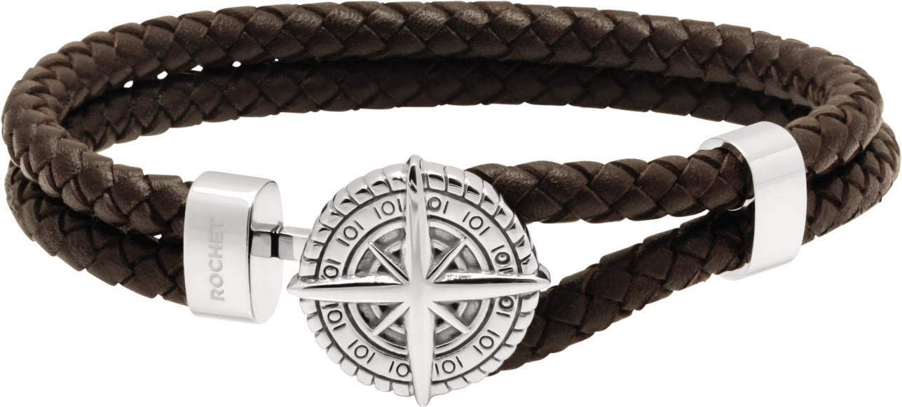 HB7603 STANFORD: POLISHED STEEL BRACELET, BROWN FLAT, ROUND, AND BRAIDED LEATHER STRAPS. 21CM ADJUSTABLE. RRP $105