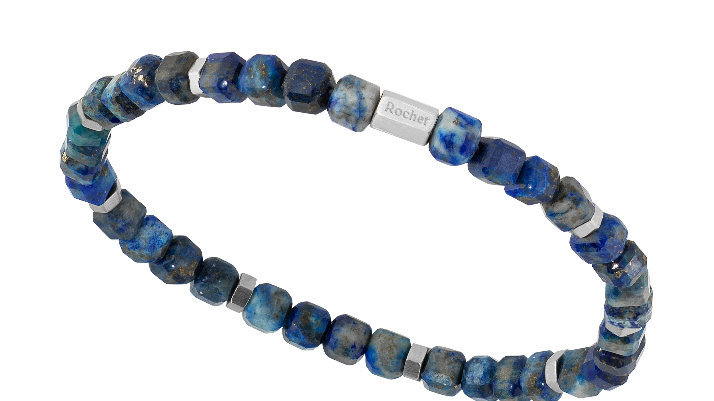 HB9606 BOREAL: ELASTIC BRACELET WITH 5.5MM LAPIS LAZULI & SATINED STEEL. ONE SIZE. RRP $120.