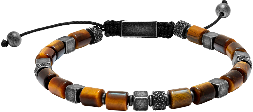 HB6803 NIRVANA: BRACELET, 6MM VINTAGE STEEL BEADS, & TIGERS EYES. ADJUSTABLE. RRP $120